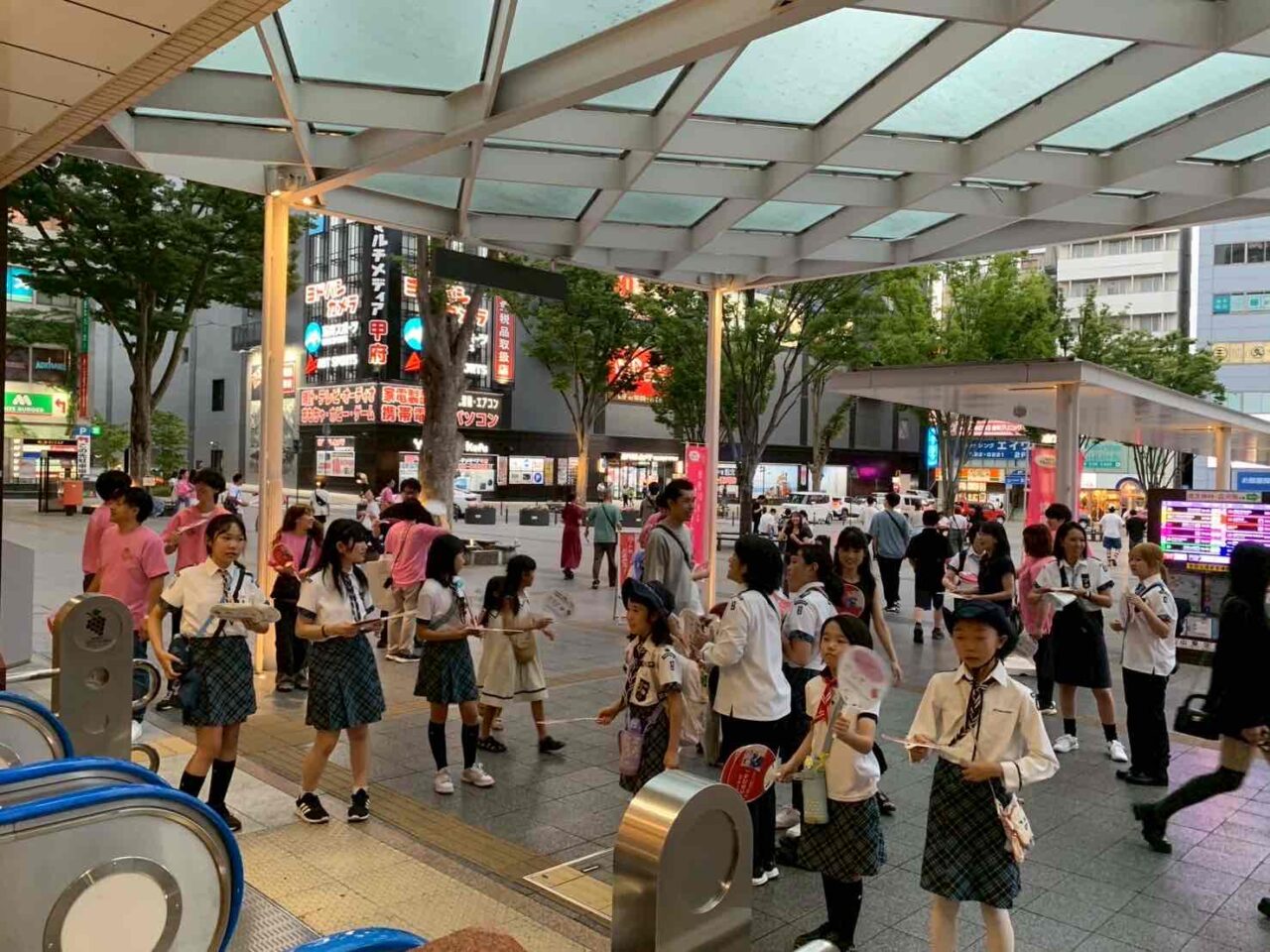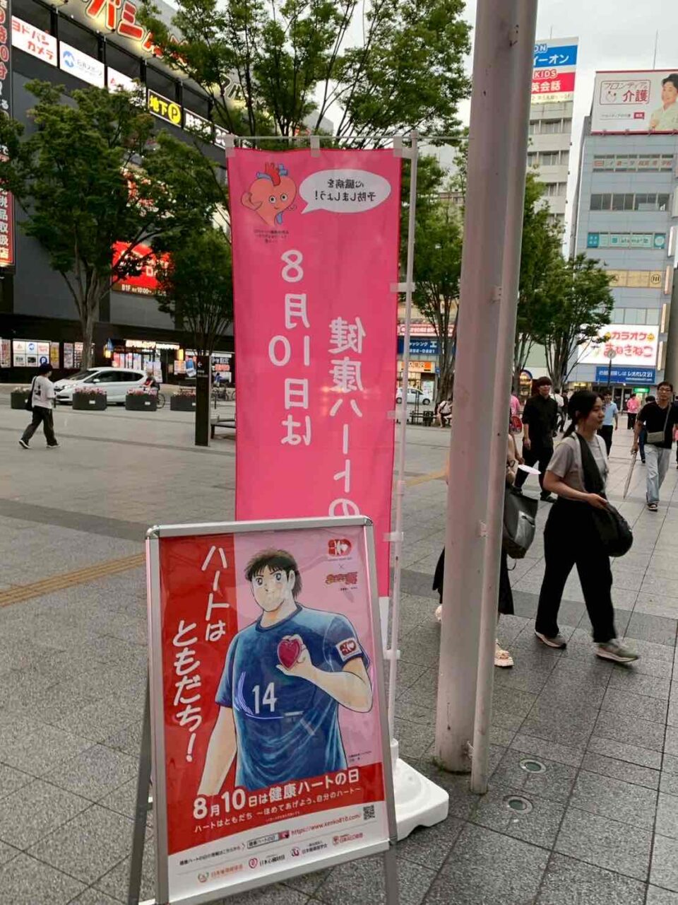 当日の甲府駅は観光客、登山客や地元学生さんなど大勢でにぎわっており、オリジナルうちわで少しでも涼んでもらい健康ハートの日について、また心臓病について知ってもらえるよう呼びかけました。