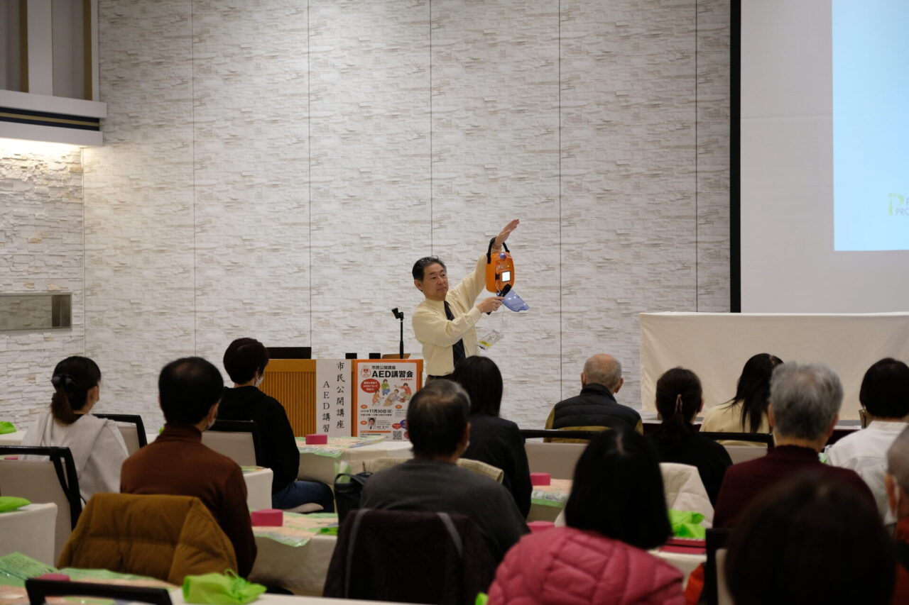 2025年11月30日(日)、東京慈恵会医科大学 救急災害医学講座 教授で日本AED財団 常務理事も務めておられる武田聡先生を講師に迎え、ベルクラシック甲府にて「市民公開講座AED講習会」を開催しました。
