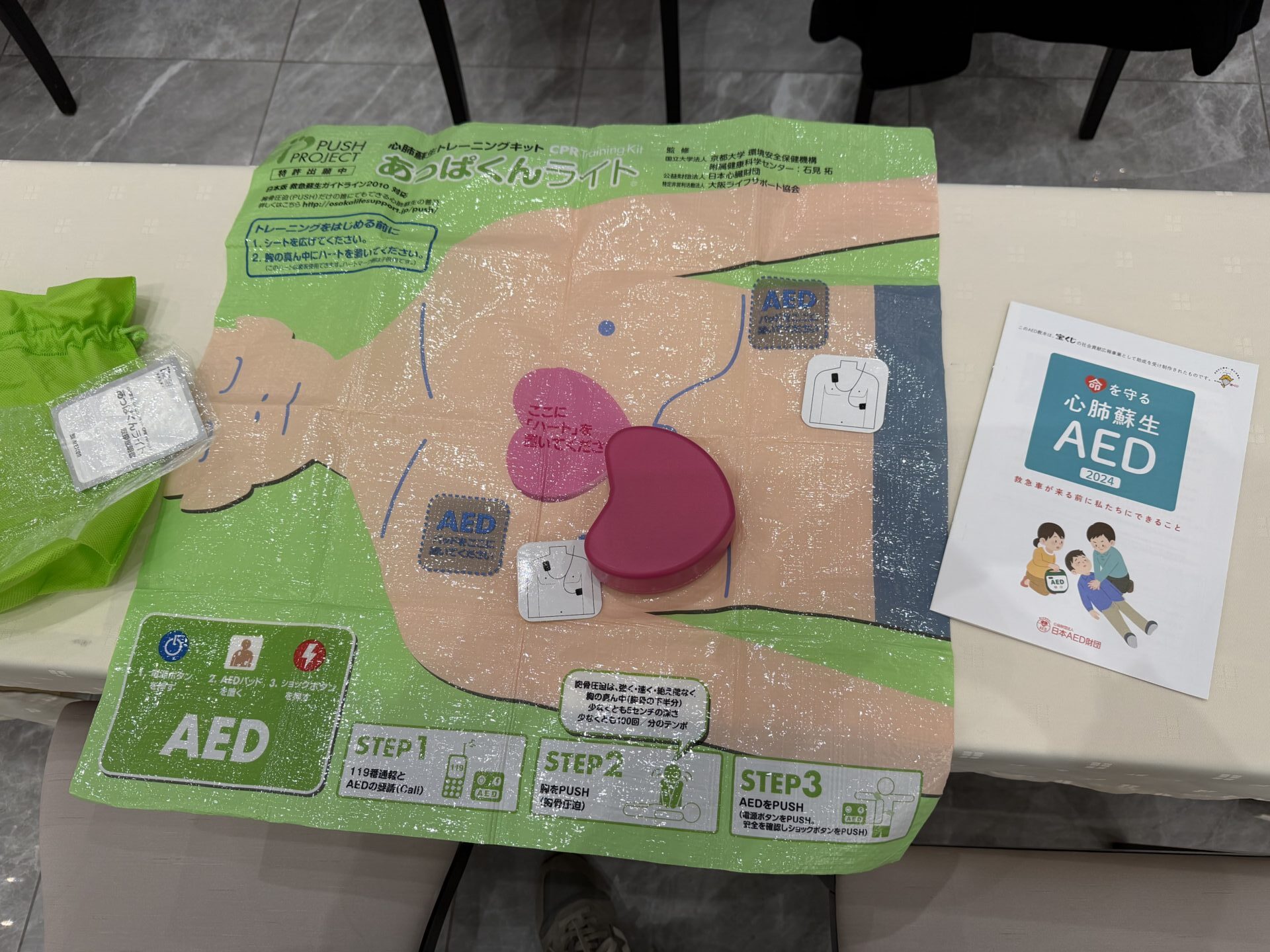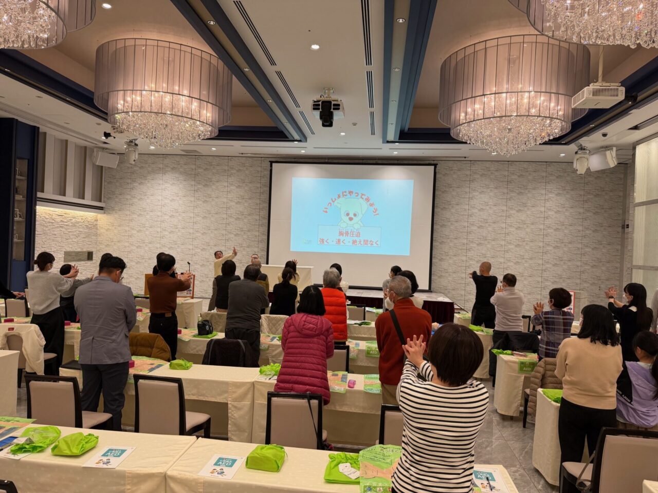 参加者募集の段階で、自治体や各団体で既にAED講習が行われているとの声が多く、普及が広く進んでいることを改めて実感しました。本講習は単にAEDの操作方法を教えるだけでなく、普及の経緯や迅速な処置の重要性についても学べる内容であり、我々にとっても普及の必要性を再認識する良い機会となりました。